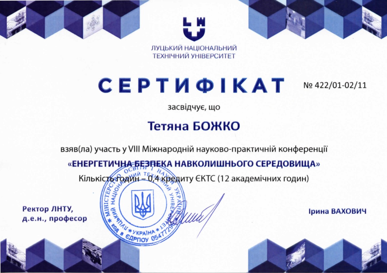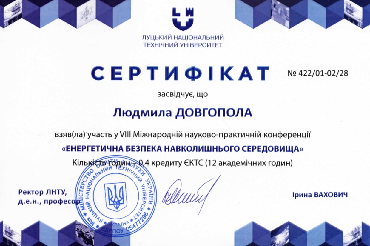 23-25 жовтня у Луцькому національному технічному університеті відбулася VIIІ Міжнародна науково-практична конференція «Енергетична безпека навколишнього середовища». Організатором конференції виступила кафедра екології закладу, а до роботи поважного міжнародного зібрання долучилися науково-педагогічні працівники кафедри природничих дисциплін і методики навчання факультету природничої освіти Університету Григорія Сковороди в Переяславі.