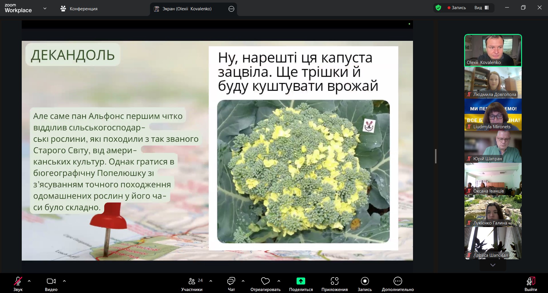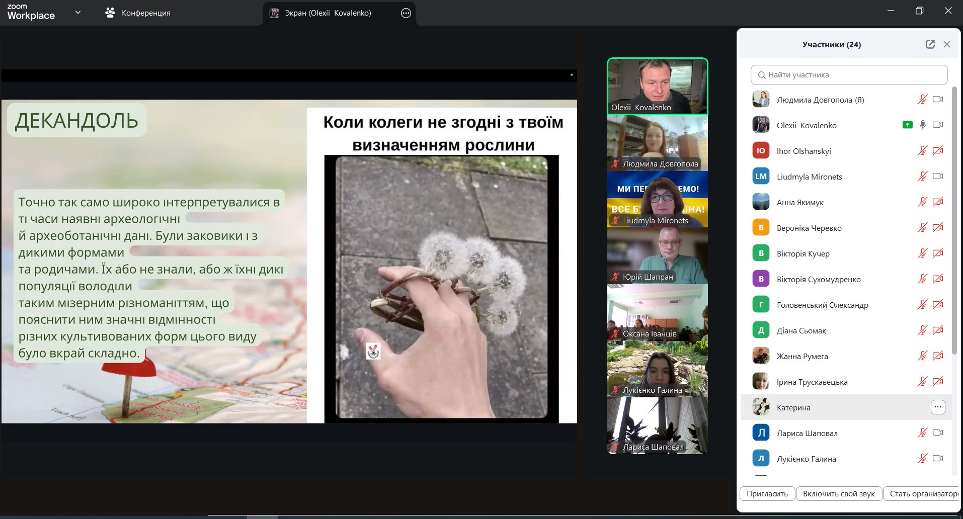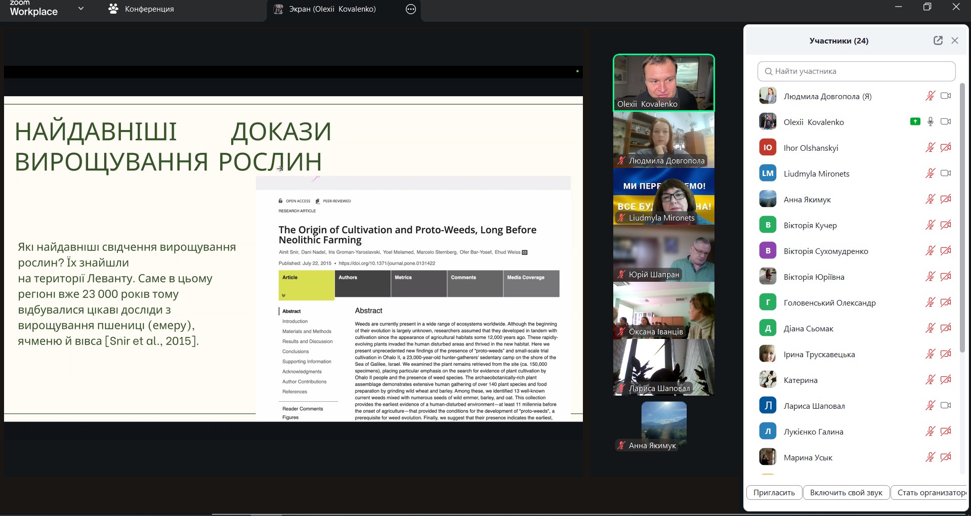 У процесі виступу Олексій Коваленко здійснив змістовний науково-популярний екскурс в історію становлення вчення про одомашнення рослин, окреслив основні етапи формування зазначеної концепції у ботаніці та агрономії, а також розкрив її значення для розуміння еволюції культурних рослин.