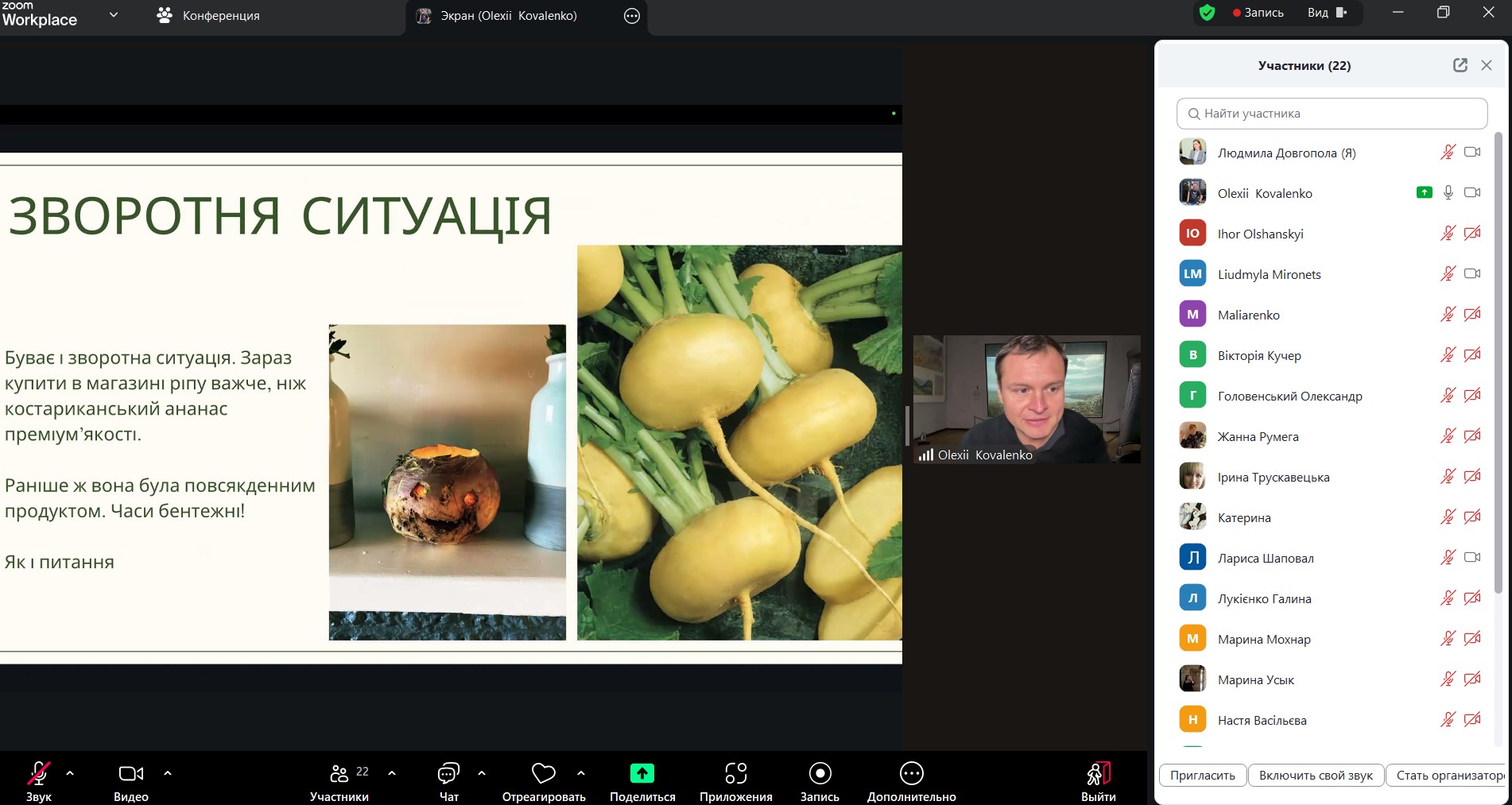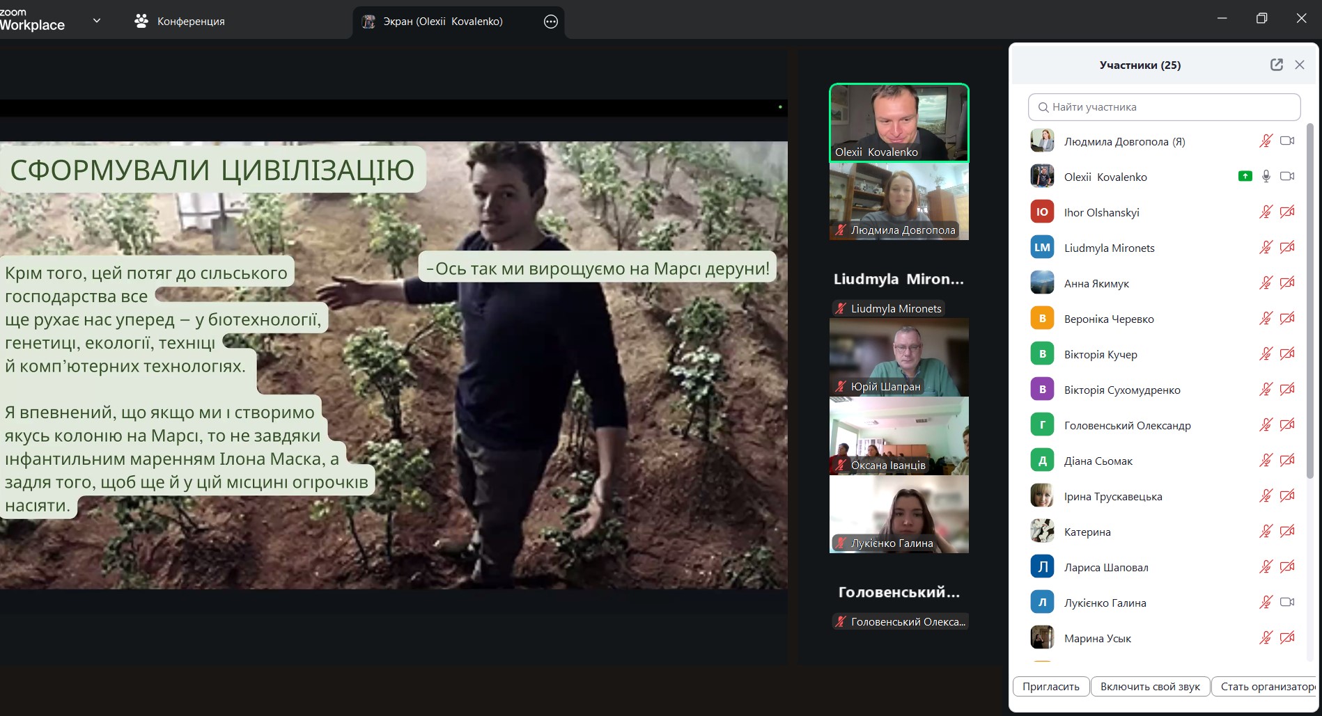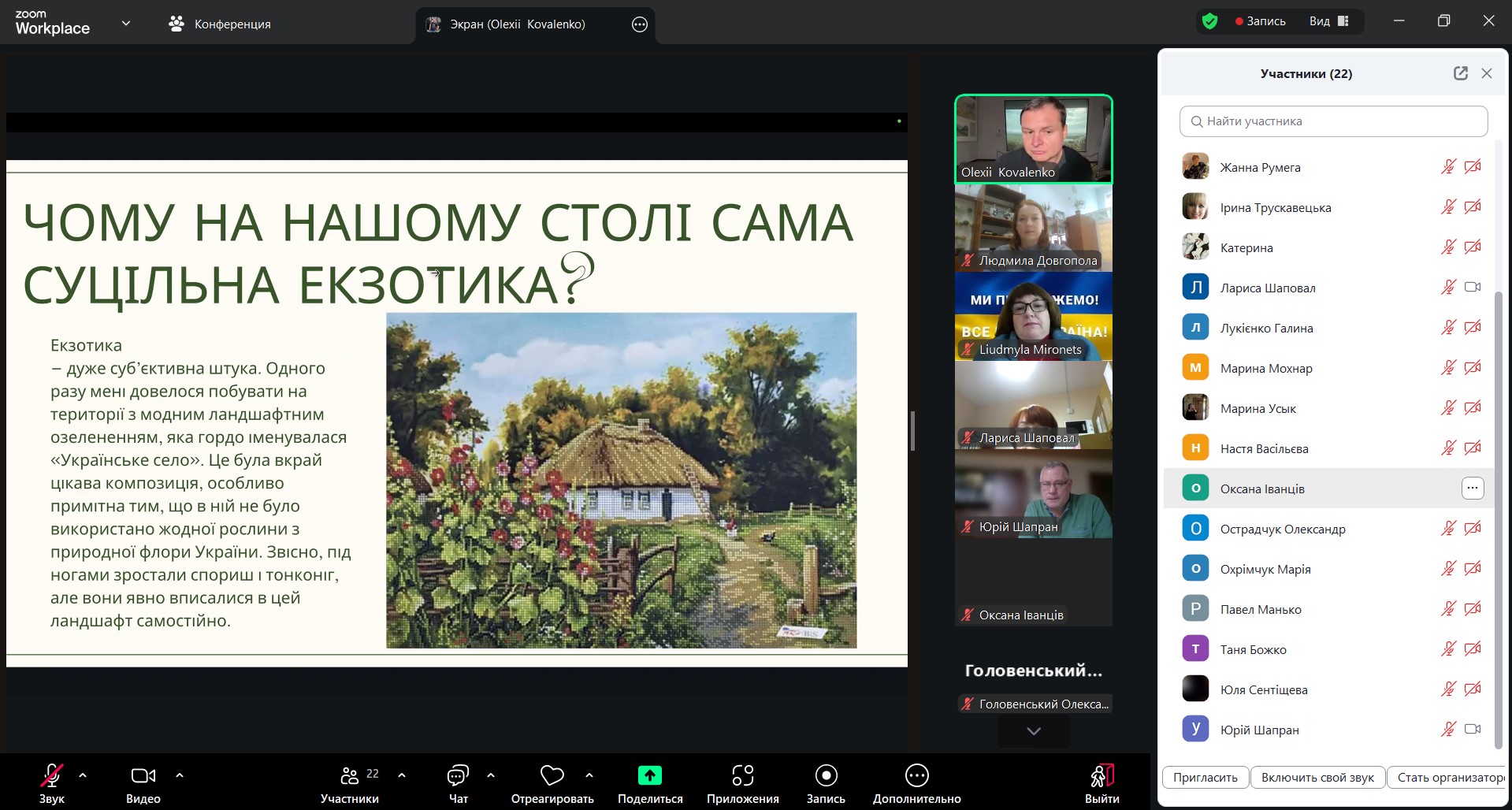 У процесі виступу Олексій Коваленко здійснив змістовний науково-популярний екскурс в історію становлення вчення про одомашнення рослин, окреслив основні етапи формування зазначеної концепції у ботаніці та агрономії, а також розкрив її значення для розуміння еволюції культурних рослин.