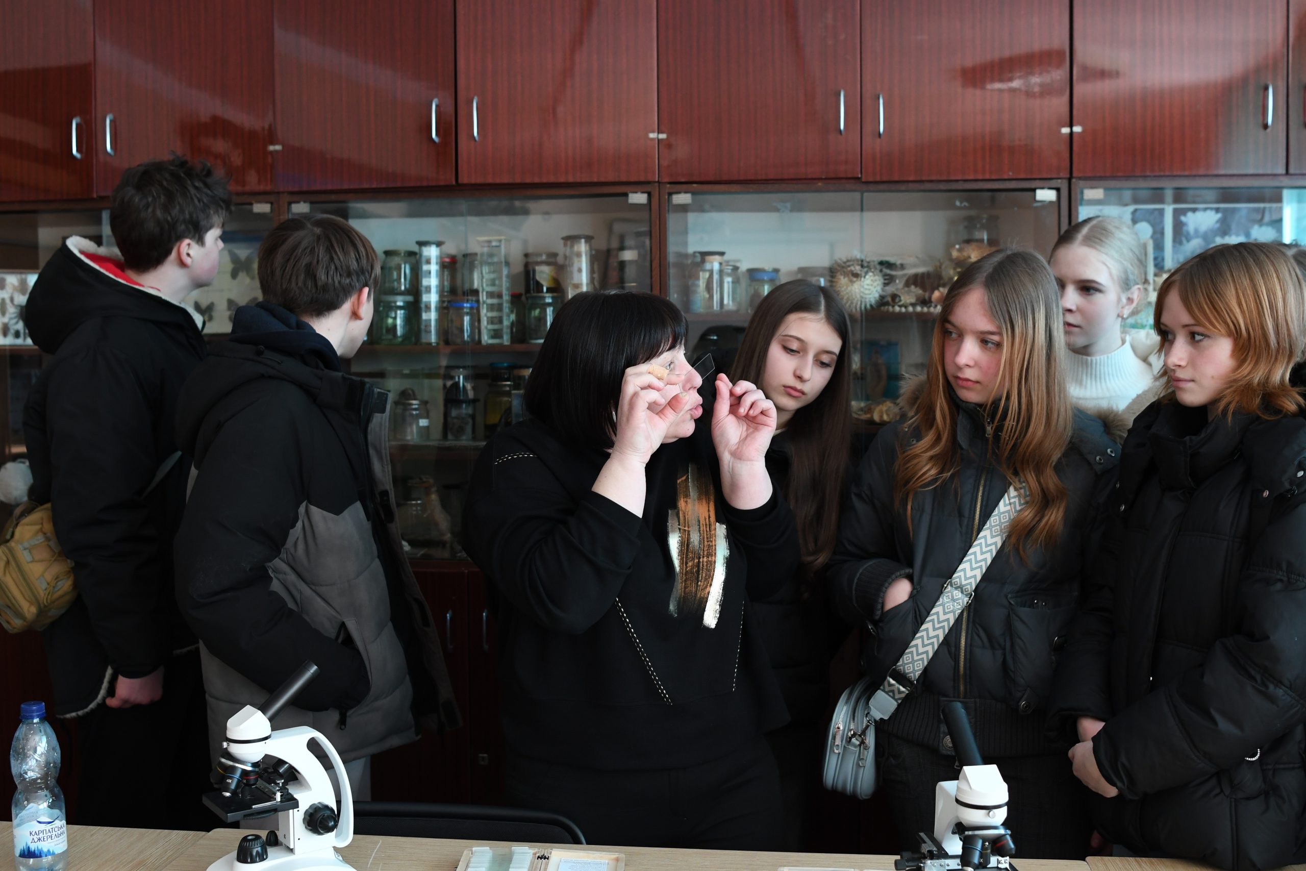 Профорієнтаційна зустріч із здобувачами освіти Переяславської гімназії №3 Переяславської міської територіальної громади була зорганізована безпосередньо в університеті завідувачкою кафедри екології, географії і методики навчання Людмилою Воловик та заступником декана факультету природничої освіти Оленою Дзюбенко. Учні, під керівництвом заступника директора з виховної роботи гімназії Людмили Дяченко, ознайомилися з освітніми програмами підготовки здобувачів вищої освіти першого (бакалаврського) рівня, які реалізуються на факультеті природничої освіти, аудиторіями, де проходить освітній процес. Самі проводили дослідження, використовуючи університетські інноваційні технології навчання, отримали позитивні враження від почутої інформації, проведених власних дослідів.