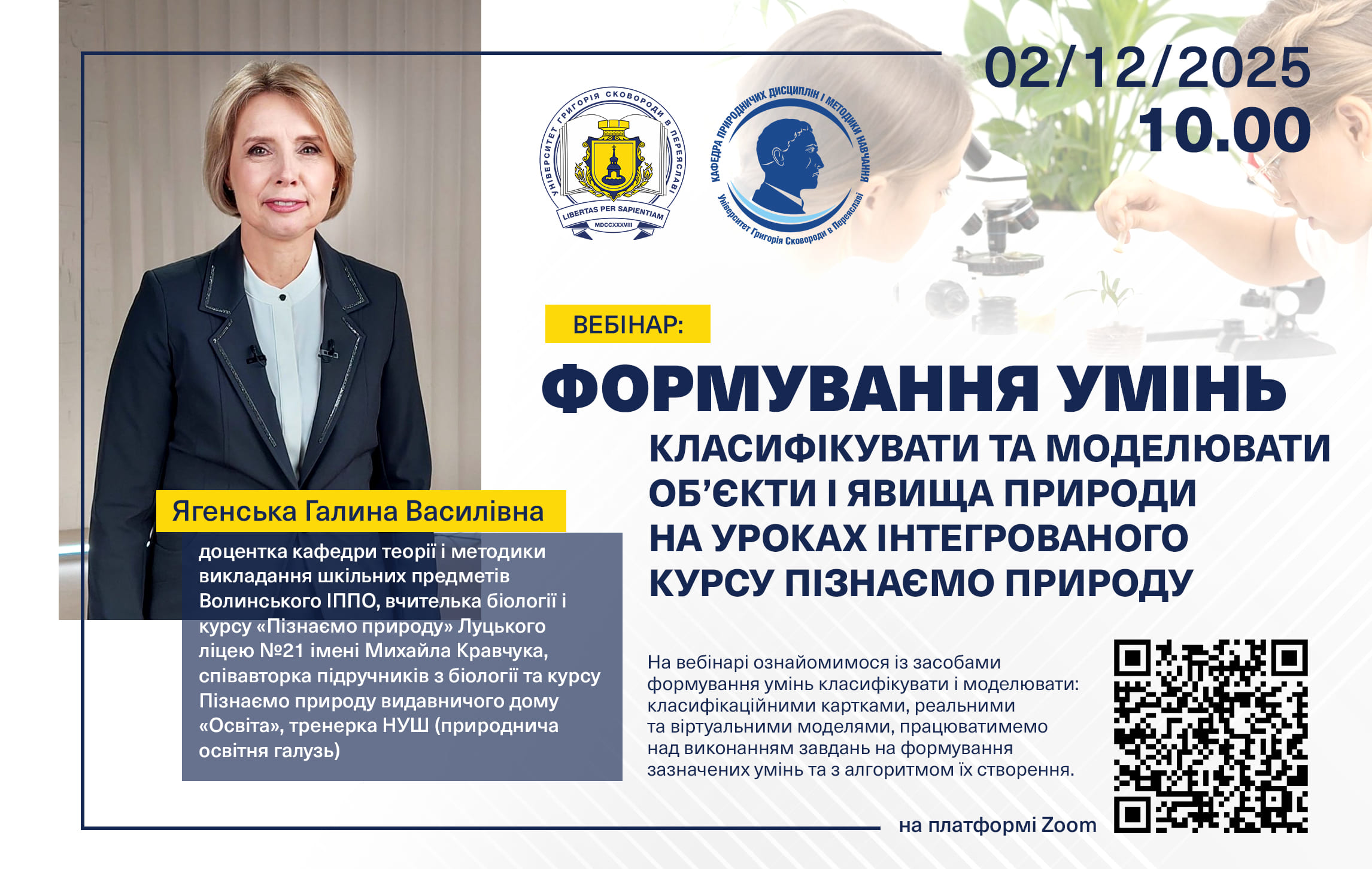 Науковиця Галина Ягенська проведе вебінар на тему «Формування умінь класифікувати та моделювати об’єкти і явища природи на уроках інтегрованого курсу Пізнаємо природу»